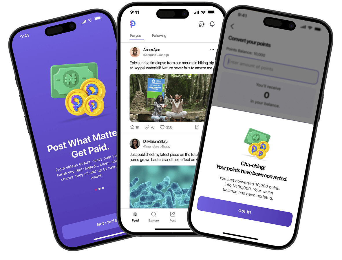 Postam is the social app where every like, comment, and share turns into points, and points turn into cash. No gimmicks. Just community, creativity, and rewards.